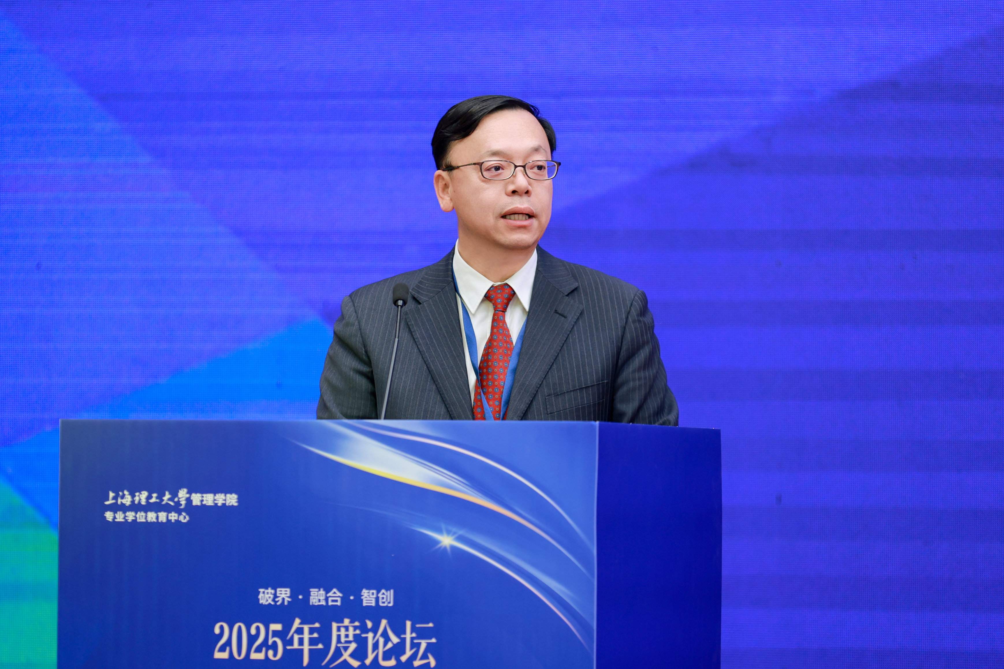 管理学院院长赵来军代表学院作2025年度产教融合专题报告。他表示,学院积极响应学校综合改革部署,确立了“系统+科技+商学”育人新定位,构建了“AI-SMART”五阶递进式人才培养模式,通过课程共建、场景教学、双师协同与平台共创等多元路径,有效提升了人才培养质量与社会服务能力,形成了特色鲜明的“上理管院模式”。学院紧扣产业前沿动态,在低空经济新赛道设立人才培训基地,并与多家金融机构共建特色班级与实训平台。相关举措有效提升了人才培养质量与社会服务能力。未来,学院将进一步深化“校-企-研”闭环机制,拓展国际合作,以AI为驱动,重塑商科人才培养链路。