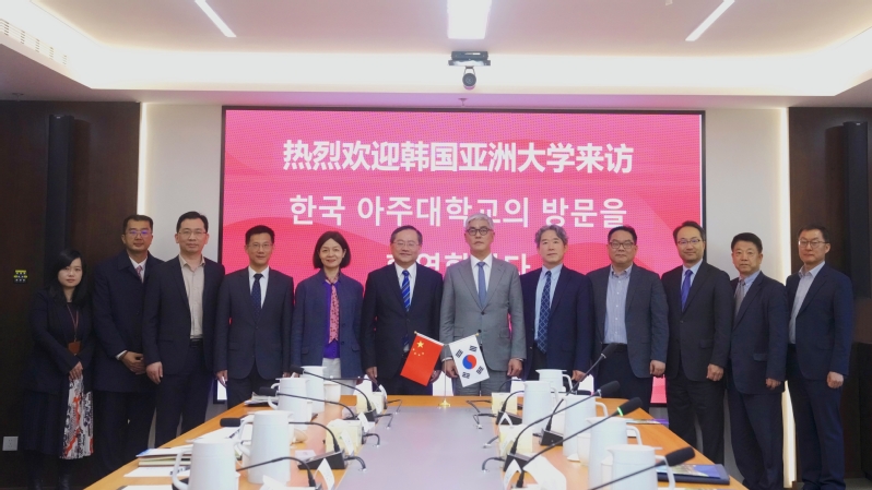 4月14日上午,韩国大宇学院学校法人理事长金善鎔、法人常务理事任宰賢、韩国亚洲大学副校长安秉珉一行6