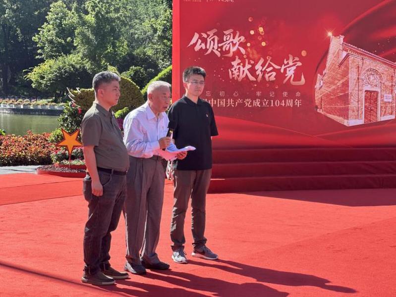 7月1日上午,上海理工大学管理学院退休教师顾宝炎教授在中共一大纪念馆国旗广场举办的七一纪念活动暨文物