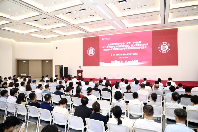 7月4日下午,上理工举行党委理论学习中心组(扩大)学习会暨2025年二级学院书记院长培训班、深入贯彻