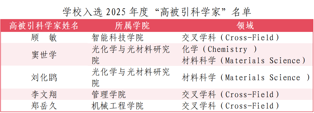 学校5位学者入选2025年度全球“高被引科学家”