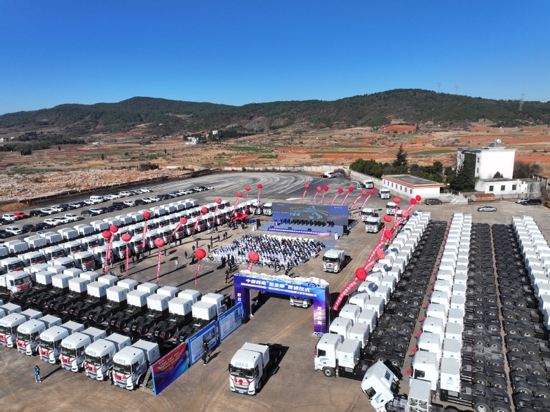 1月16日,中国西南“氢走廊”贯通仪式暨氢通富源风光制加氢一体化项目300辆氢能重卡发车运营仪式在云